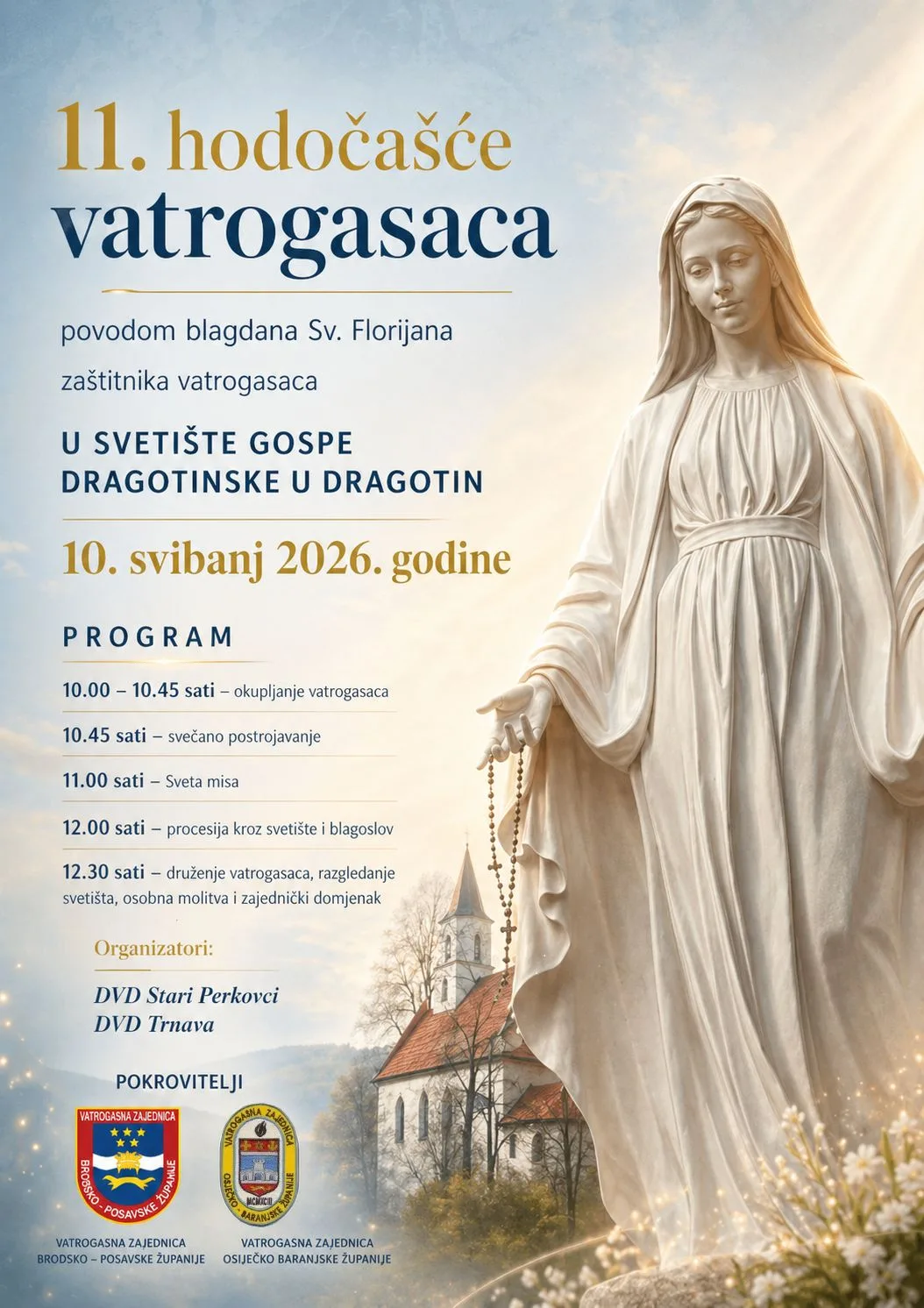 11. hodočašće vatrogasaca, povodom blagdana Sv. Florijana zaštitnika vatrogasaca, održat će se 10. svibnja (nedjelja) 2026. u svetištu Gospe Dragotinske u Dragotinu. Organizatori su DVD Stari Perkovci i DVD Trnava a pokrovitelji vatrogasne zajednice Brodsko-posavske i Osječko-baranjske županije.